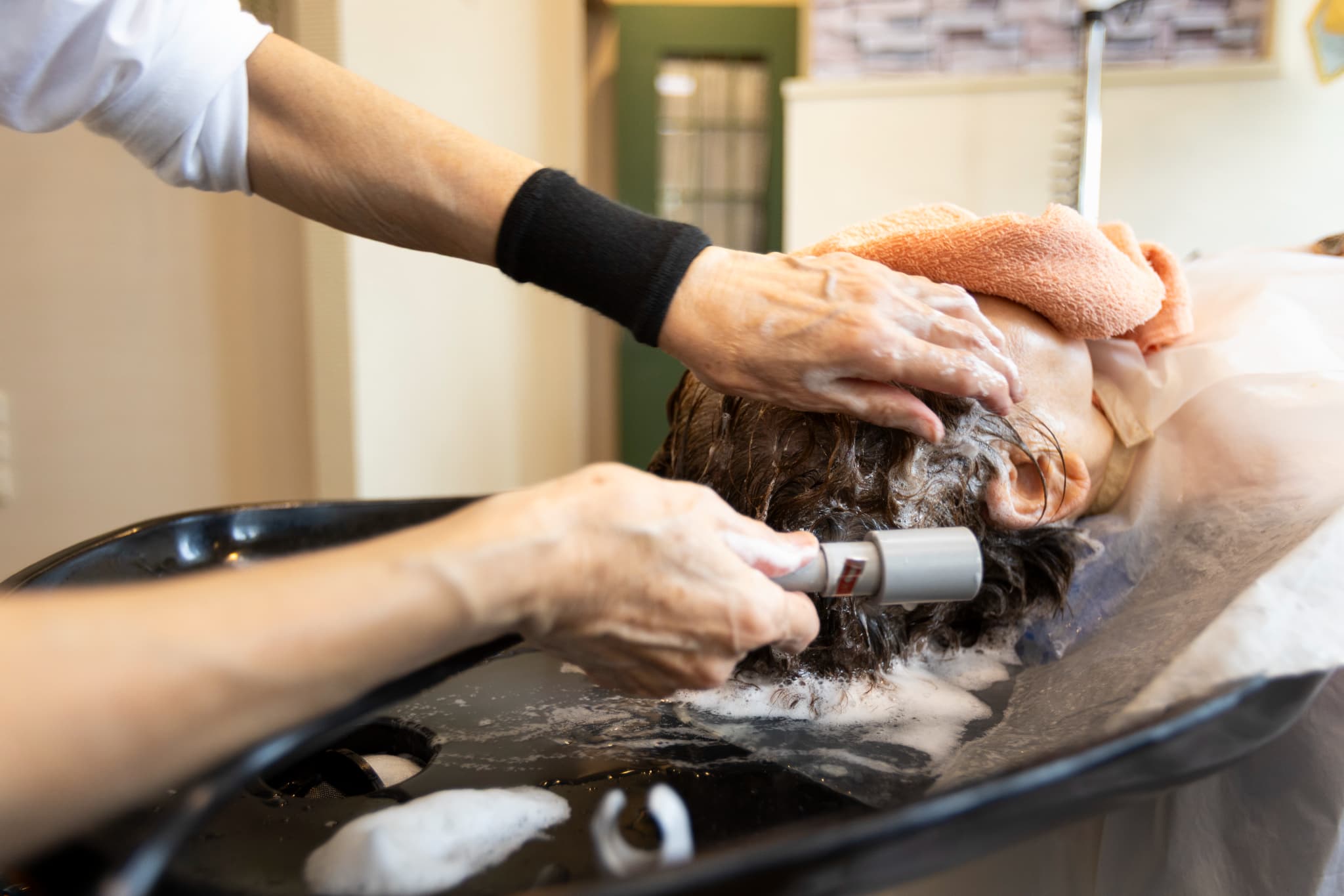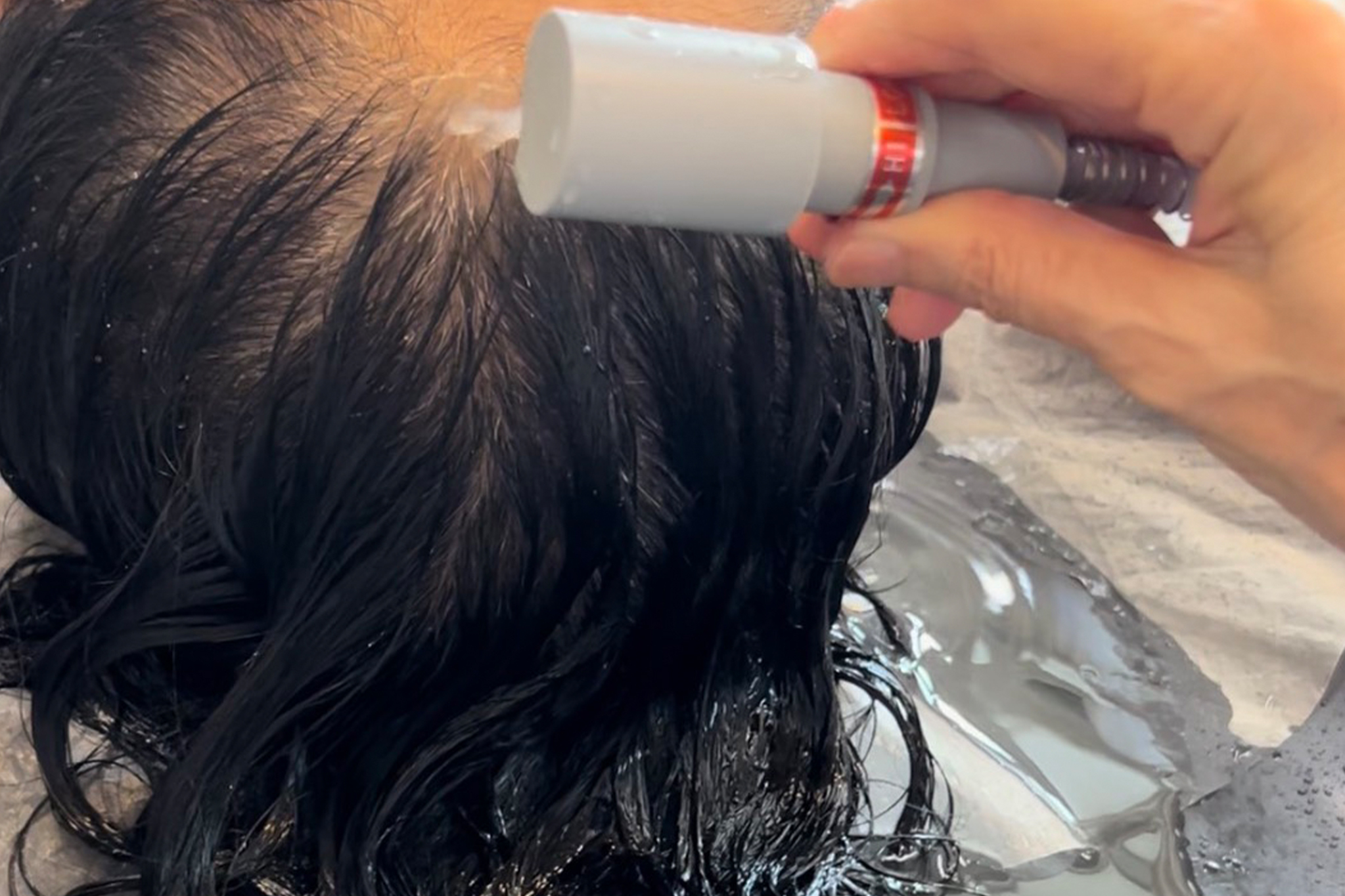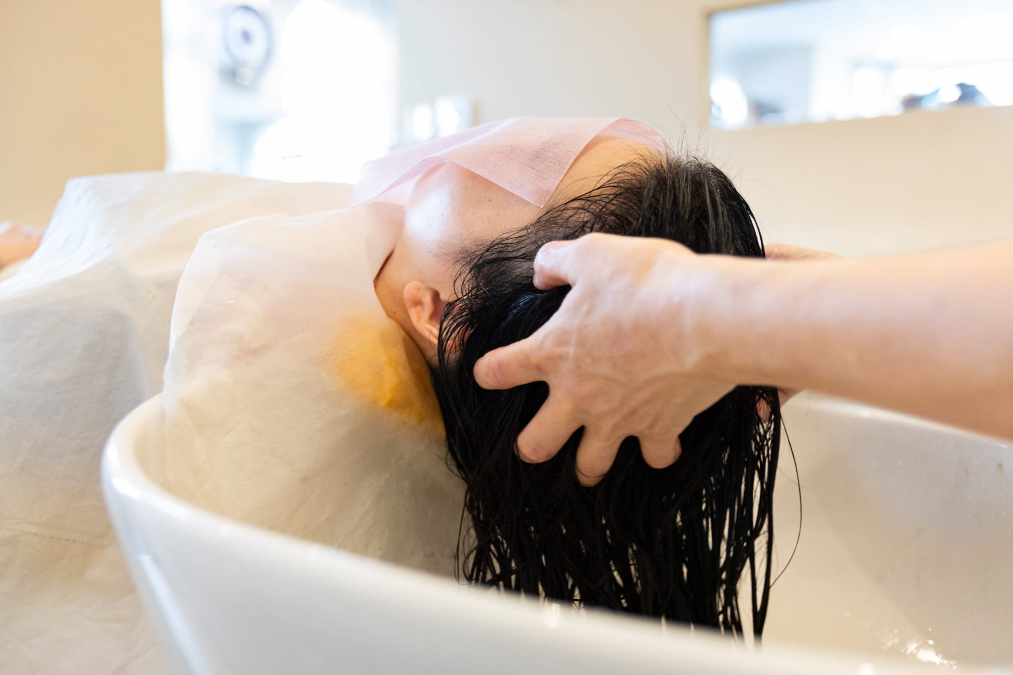 ゆっくりと頭皮を洗浄する